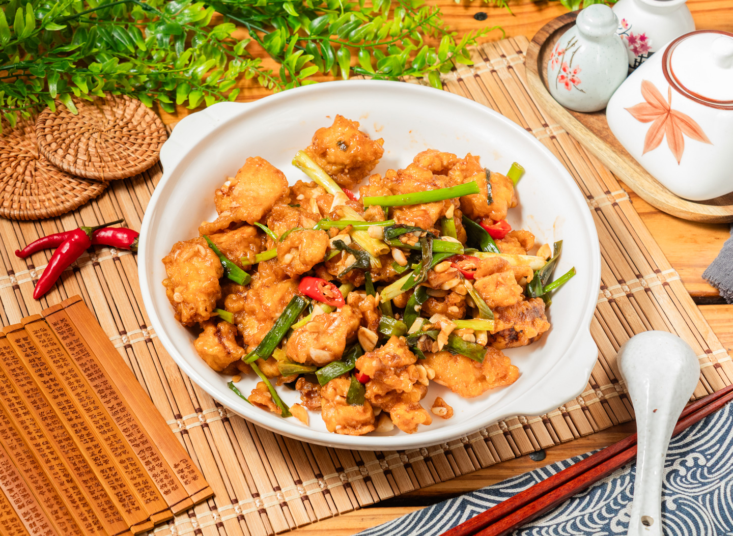 包含:提筷嗆雞、時蔬、配菜與白飯。 Includes: Tikuai Chicken, Vegetable, Side and Rice.